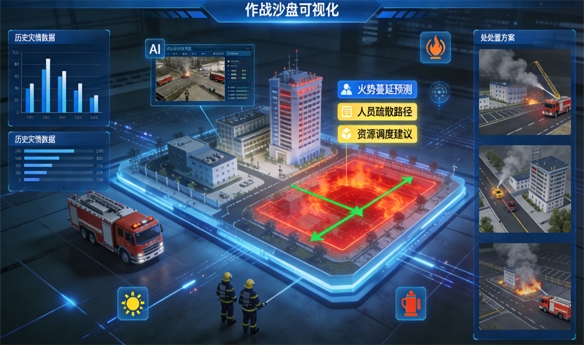 平台内置虚拟演练系统,支持100余种场景模拟,可模拟不同类型火情、救援环境,组织消防人员开展应急演练。通过模拟火情蔓延、人员搜救、设备调度等全流程,提升消防人员应急处置熟练度与协同作战能力,为实战救援奠定坚实基础。