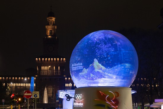 米兰·阿里廊是阿里巴巴在米兰斯福尔扎古堡前广场设置的体验馆,于米兰冬奥会和残奥会期间对游客开放。展馆由一颗直径8.8米的透明水晶球和一座总长约30米的冰晶穹顶组成。水晶球白天作为互动空间,夜间变身为AI生成视觉内容的投影表面。